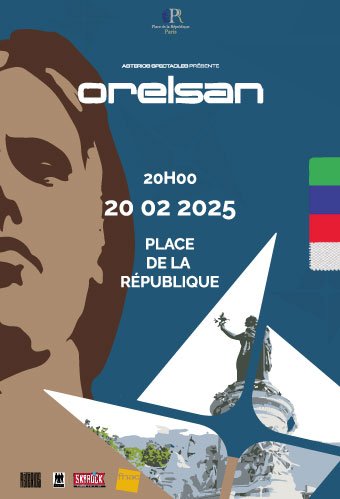 En complément, j’ai réalisé l’affiche d’un concert sur cette place emblématique, mettant en avant l’univers artistique d’Orelsan.